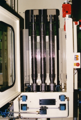 Die für den Werkzeugwechsel notwendige Bewegungskombination wird vom Kommandopult aus gesteuert. Danach stehen die Werkzeuge entriegelt im Schafthalter bei nach oben gefahrenem Räumschlitten. In dieser Lage können die Werkzeuge durch einen Handgriff entnommen und wieder eingesteckt werden. Werkzeugwechsel für schwere Räumwerkzeuge: Es stehen mehrere Ausrüstungen zur Verfügung für die Bewegung der Räumwerkzeuge nach aussen zur Zugänglichkeit für den externen Kran durch einfache Mittel oder für vollautomatischen Wechsel mit oder ohne Werkzeugrevolvermagazin. Schaft- und Endstückausführung sind DIN 1417 angeglichen